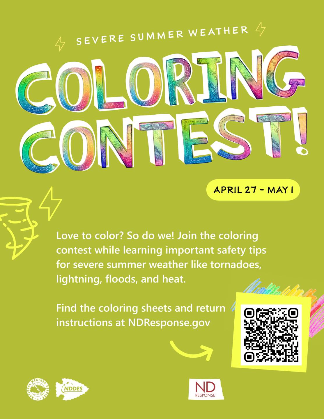 To have some fun as we learn how to be safe, we are pleased to host a coloring contest. Color and return one of the coloring sheets below for a chance to win a prize! Prizes include things to keep on hand during severe weather events.